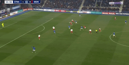 第55分钟,巴尔科直塞,恩西索晃开门将推射破门,斯特拉斯堡2-0摩纳哥